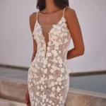 O Anémona é um vestido que parece um verdadeiro jardim desenhado no corpo da noiva, destacando de forma delicada e elegante a sua silhueta. O grande decote nas costas confere ousadia e sensualidade, mas sem perder o equilíbrio e o bom gosto.