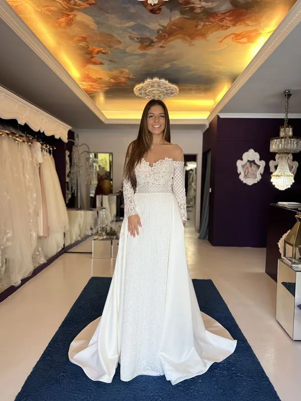 O Calipso é uma peça única, tamanho M, criada para a noiva que busca elegância, sobriedade e delicadeza no seu grande dia. Com um design pensado para proporcionar conforto e sofisticação, é o modelo ideal para casamentos em outono ou inverno, garantindo charme e aconchego em cada detalhe.