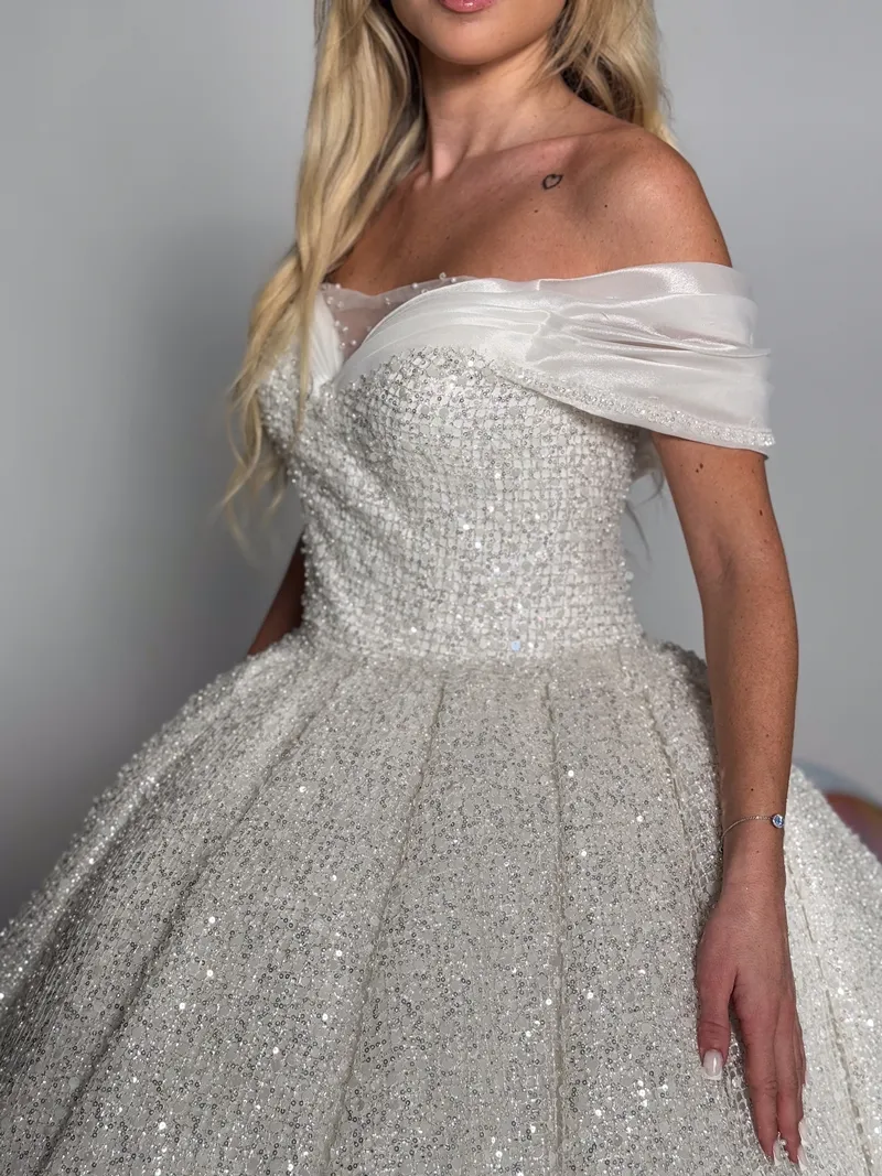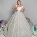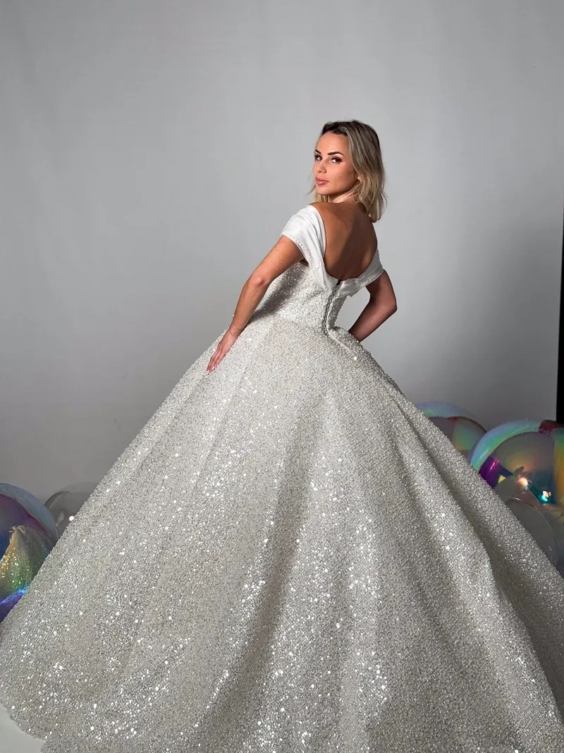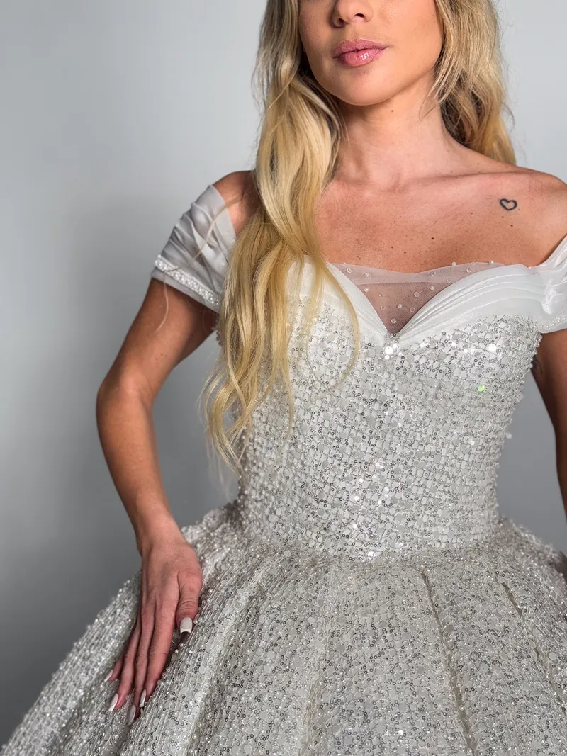 Um vestido estilo princesa e romântico com renda estilo orgânica invocando a beleza dos corais submersos. Perfeito para noivas que procuram leveza e originalidade.