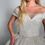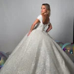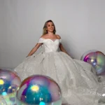 …Um vestido estilo princesa e romântico com renda estilo orgânica invocando a beleza dos corais submersos. Perfeito para noivas que procuram leveza e originalidade.