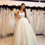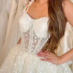 …Vestido de noiva, estilo princesa aos gomos, corpete em caicai com alças