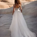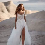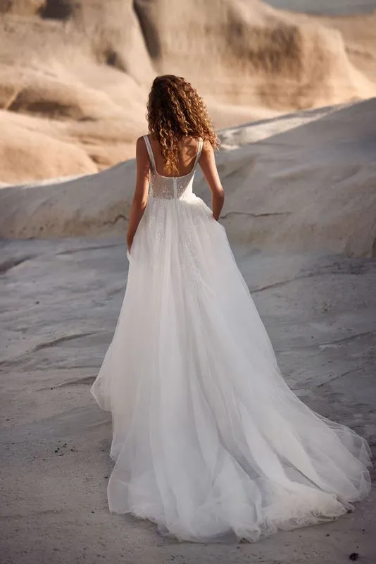 Com o decote quadrado e a racha elegante, Petra é um vestido que mistura tradição e modernidade, ideal para a noiva que deseja ser delicada, sofisticada e, ao mesmo tempo, marcante.