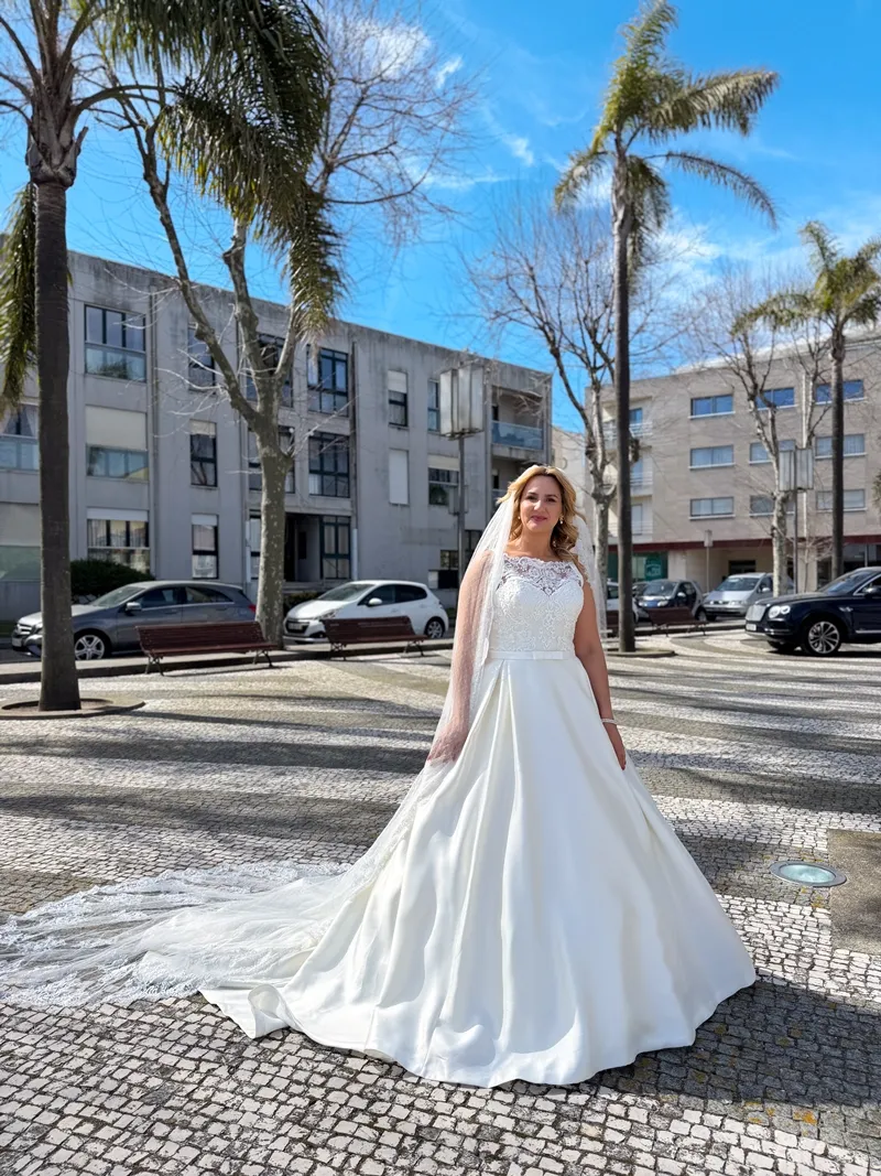 …Vestido em cor Ivory acentuado, com renda. Peça única (última unidade)