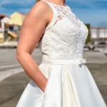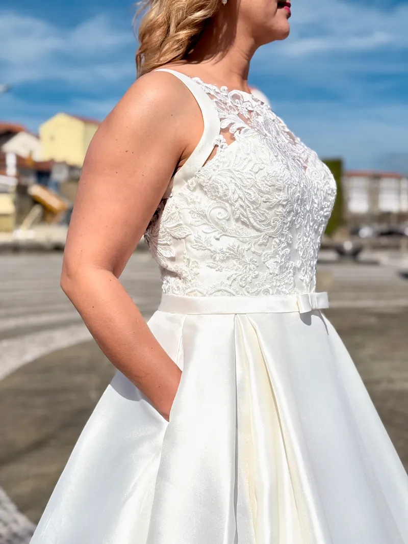 Vestido em cor Ivory acentuado, com renda. Peça única (última unidade)